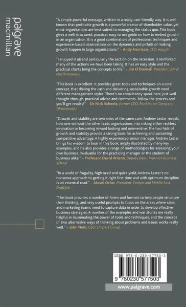 'It has a simple powerful message, written in a really user friendly way. It is well known that profitable growth is a powerful creator of shareholder value yet most organisations are best suited to managing the status quo. This book gives a well structured, practical, easy to use guide on how to embed growth in an organisation. It is a good combination of professional techniques and experienced based observations on the dynamics and pitfalls of making growth happen in large organisations' - Andy Harrison, CEO easyJet