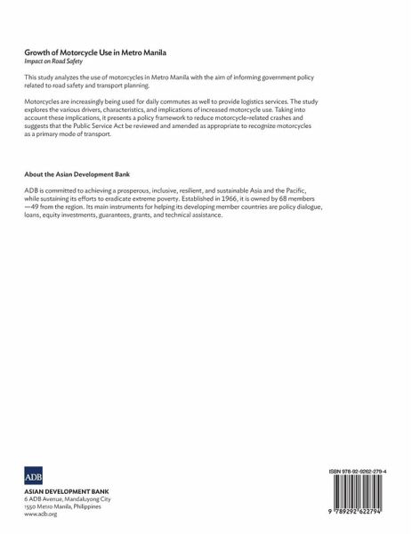 This study analyzes the use of motorcycles in Metro Manila with the aim of informing government policy related to road safety and transport planning. Motorcycles are increasingly being used for daily commutes as well to provide logistics services. The study explores the various drivers, characteristics, and implications of increased motorcycle use. Taking into account these implications, it presents a policy framework to reduce motorcycle-related crashes and suggests that the Public Service Act be reviewed and amended as appropriate to recognize motorcycles as a primary mode of transport.