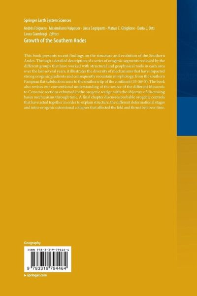 This book presents recent findings on the structure and evolution of the Southern Andes. Through a detailed description of a series of orogenic segments reviewed by the different groups that have worked with structural and geophysical tools in each area over the last several years, it illustrates the diversity of mechanisms that have impacted strong orogenic gradients and consequently mountain morphology, from the southern Pampean flat subduction zone to the southern tip of the continent (33-56º S). The book also revises our conventional understanding of the source of the different Mesozoic to Cenozoic sections exhumed in the orogenic wedge, with the objective of discussing basin mechanisms through time. A final chapter discusses probable orogenic controls that have acted together in order to explain structure, the different deformational stages and intra-orogenic extensional collapses that affected the fold and thrust belt over time.