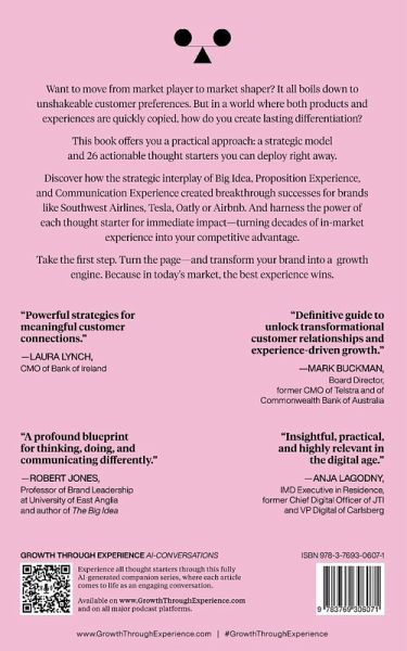 Want to move from market player to market shaper? It all boils down to unshakeable customer preferences. But in a world where both products and experiences are quickly copied, how do you create lasting differentiation? This book offers you a practical approach: a strategic model and 26 actionable thought starters you can deploy right away. Discover how the strategic interplay of Big Idea, Proposition Experience and Communication Experience created breakthrough successes for brands like Southwest Airlines, Tesla, Oatly or Airbnb. And harness the power of each thought starter for immediate impact - turning decades of in-market experience into your competitive advantage. Take the first step. Turn the page - and transform your brand into a growth engine. Because in today's market, the best experience wins. www.GrowthThroughExperience.com "Essential guide for championing real loyalty and growth." MAURO PORCINI, Chief Design Officer of PepsiCo "Powerful strategies for meaningful customer connections." LAURA LYNCH, CMO of Bank of Ireland "Definitive guide to unlock transformational customer relationships and experience-driven growth." MARK BUCKMAN, Board Director, former CMO of Telstra and of Commonwealth Bank of Australia "A profound blueprint for thinking, doing, and communicating differently." ROBERT JONES, Professor of Brand Leadership at University of East Anglia and author of The Big Idea "Insightful, practical, and highly relevant in the digital age." ANJA LAGODNY, IMD Executive in Residence, former Chief Digital Officer of JTI and VP Digital of Carlsberg "Powerful and proven tactics for accelerating business growth." ELISABETH ELLISON-DAVIS, Group Chief Strategy & Transformation Officer at Le Groupe Bel "A fresh perspective on orchestrating experiences that drive lasting growth." MARC VONTOBEL, Founder and CEO at Starmind "A must read for every industry challenger." RUTGER VERHOEF, Co-Founder and CEO at GOWAGO "A visionary toolkit for disruptive, lasting change." NIELS SCHÄFER, Co-Founder and CEO at LOEV Jewelry "Clear strategies for delighting customers and driving sustainable growth." MARCUS SCHÖGEL, Professor of Marketing at University of St. Gallen, Switzerland "Masterful blend of theory and practice for real world business success." MATTHIAS ACKERET, Publisher and Editor-in-Chief at Persönlich