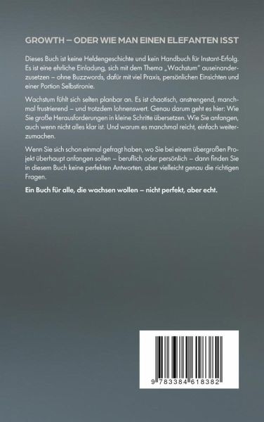 Wachstum fühlt sich selten planbar an.Ob im Business, bei persönlichen Projekten oder im ganz normalen Leben: Dieses Buch ist für alle, die vor großen Herausforderungen stehen und nicht wissen, wo sie anfangen sollen. Statt Buzzwords und Patentrezepte gibt es hier ehrliche Einblicke, praktische Impulse und eine klare Botschaft: Man muss nicht alles auf einmal schaffen - aber man muss loslegen.Mit einem Augenzwinkern, viel Praxisnähe und persönlichen Erfahrungen zeigt "Growth - oder wie isst man einen Elefanten", wie große Ziele machbar werden - Schritt für Schritt. Ein Buch für alle, die nicht perfekt sein wollen, sondern echt.