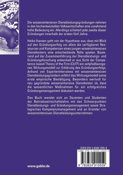 Heiko Hansen geht von der Hypothese aus, dass mit Blick auf den Gründungserfolg vor allem die verfügbaren Ressourcen und Kompetenzen eines jungen wissensintensiven Dienstleisters eine entscheidende Rolle spielen. Basierend auf der Zusammenführung der Dienstleistungs- und Gründungsforschung entwickelt er aus Sicht der Competence-based Theory of the Firm (CbTF) ein zeitpfadbezogenes Wirkungsmodell zur Erklärung des Gründungserfolgs. Anhand von Experteninterviews mit wissensintensiven Dienstleistungsgründern erfährt das Wirkungsmodell seine erste empirische Bestätigung. Besonders wertvoll für neu gegründete wissensintensive Dienstleister ist, dass die wesentlichen Maßnahmen für ein erfolgreiches Gründungsmanagement diskutiert werden.
