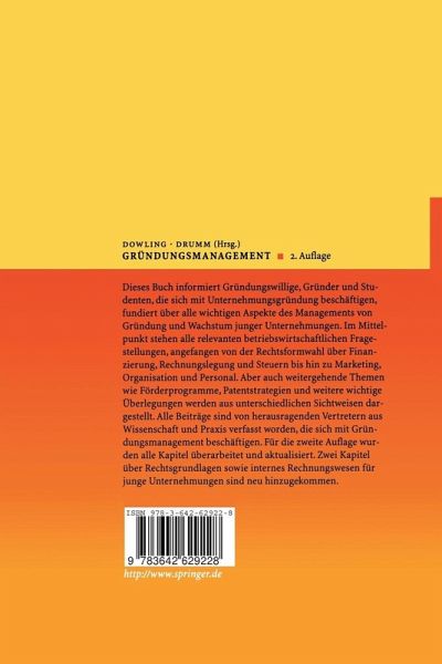 Dieses Buch informiert Gründungswillige, Gründer und Studenten, die sich mit Unternehmungsgründung beschäftigen, fundiert über alle wichtigen Aspekte des Managements von Gründung und Wachstum junger Unternehmungen. Im Mittelpunkt stehen alle relevanten betriebswirtschaftlichen Fragestellungen, angefangen von der Rechtsformwahl über Finanzierung, Rechnungslegung und Steuern bis hin zu Marketing, Organisation und Personal. Aber auch weitergehende Themen wie Förderprogramme, Patentstrategien und weitere wichtige Überlegungen werden aus unterschiedlichen Sichtweisen dargestellt. Alle Beiträge sind von herausragenden Vertretern aus Wissenschaft und Praxis verfasst worden, die sich mit Gründungsmanagement beschäftigen. Für die zweite Auflage wurden alle Kapitel überarbeitet und aktualisiert. Zwei Kapitel über Rechtsgrundlagen sowie internes Rechnungswesen für junge Unternehmen sind neu hinzugekommen.