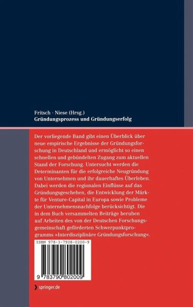 Einführung.- Generating Macro Regularity from Micro Turbulence: The Skewed Distribution of Firm Size.- The Decision to Start a New Firm: Personal and Regional Determinants. Empirical Evidence from the Regional Entrepreneurship Monitor (REM) Germany.- Der Markterfolg von Gründungen - sektorale und regionale Bestimmungsgründe.- Zur Rolle öffentlicher Förderprogramme zur Belebung von Venture Capital-Aktivitäten in Europa.- Unternehmensgründung und -entwicklung zwischen Innovation und Integration: Spin-offs aus privaten Unternehmen in Baden-Württemberg.- Zum Einfluss von Bildungssignalen auf innovative Unternehmensgründungen: Eine theoretische und empirische Analyse.- Kooperative Strategien junger technologiebasierter Dienstleistungsbetriebe.- Kooperationsbeziehungen zwischen technisch orientierten Gründungen und Forschungseinrichtungen - regionale Verflechtung und ausgewählte Erfolgsfaktoren.- Nachfolgeplanung: Eine interdisziplinäre Perspektive.- Rechtsprobleme der derivativen Gründung.- Verzeichnis der Projekte.- Verzeichnis der Autoren.