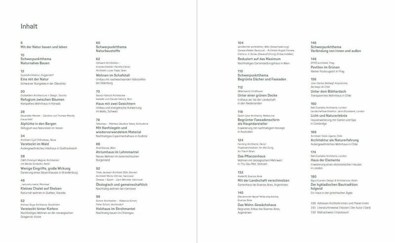 Grüne Häuser stellt 25 vorbildhafte Einfamilienhäuser vor, die die Natur einbeziehen: Sei es durch eine Bauweise, die Rücksicht auf die Landschaft nimmt, sei es durch regionale Bautraditionen und Konstruktionen oder durch nachhaltige, natürliche Baustoffe wie Holz, Lehm, Schilf, Flachs und Hanf oder aber durch begrünte Fassaden und Dächer. Die Bandbreite der Projekte reicht von einer zum Wohnen umgenutzten Almhütte im Tessin über ein Haus am Wasser bei Berlin bis zu einem Strohballenhaus in Niedersachsen. Kapitel zu Naturbaustoffen, begrünten Dächern und Fassaden, naturnahem Bauen, Verbindung von Innen- und Außenraum liefern praxisnahe Informationen zu diesen wichtigen Themen für alle Bauherr_innen. Eine Übersicht mit empfehlenswerten Planer_innen und weiterführender Literatur beschließt den Band.