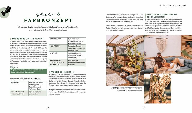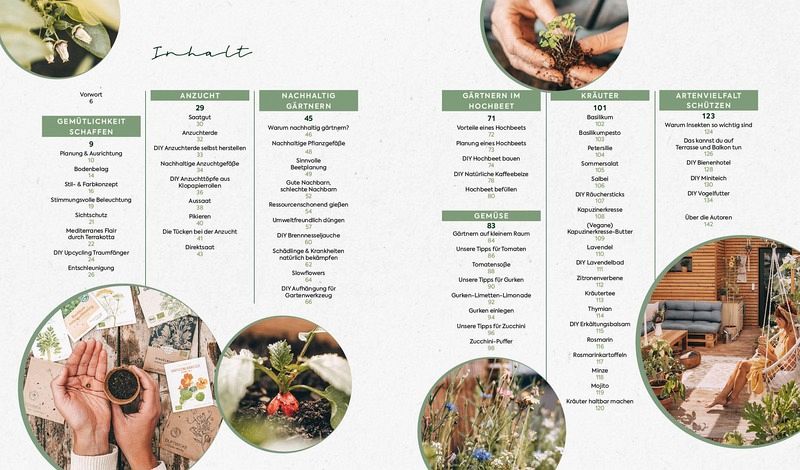 Gestaltungstipps, die Gemütlichkeit schaffen: Blumenampeln, Lichterketten und vieles mehrGemüseanbau im Hochbeet DIY-Projekte step by step: Holzterrasse verlegen, Hochbeet bauen, natürliche Deko und mehrTipps zum ökologischen Gärtnern und zur Förderung der Artenvielfalt