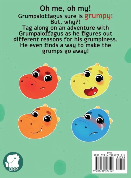 Gumpaloffagus, a kid dinosaur, sure is grumpy! He experiences many versions of grumpiness from physical things like being hungry, tired, or hurt, to feeling more complex emotions like embarrassed, scared, frustrated, and more. After exploring reasons for grumpiness, Grumpaloffagus then discovers ways to work through his emotions. Though this book is fun, silly, and engaging, it has the added benefit of being a tool to help children understand and navigate their emotions. Grumpaloffagus helps to provide children with a base understanding that "grumpy" comes in many different forms, and provides verbiage and context for emotions to better facilitate conversations about their feelings.