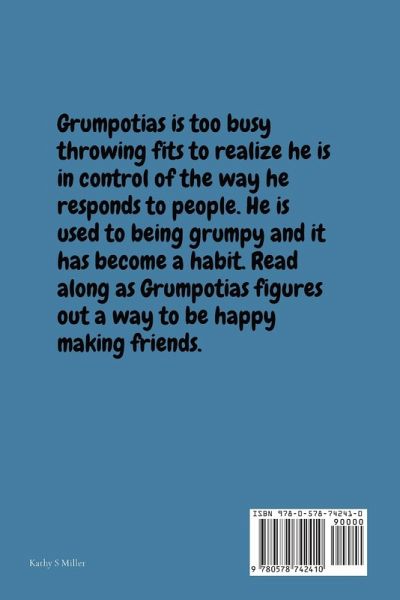 Have you ever met a grumpy person and wondered what you had done to make them mad? Are you a good neighbor and friend? Are you a grumpy person who always acts like you hate people, especially those who try to be friendly to you? Perhaps you will see yourself or someone you know in the main character of this children's book. Grumpotias is mean and grouchy! Grumpotias is a grumpy man who lives in a friendly neighborhood. Although the neighbors want to include him in events and parties, Grumpotias rebuffs all attempts at friendships and happiness. This tale begins with Grumpotias in a bad mood as he feels he has been ignored by a friend who cancelled a lunch date with him, because of family obligations. Grumpotias reacts with a temper fit. No one wants to be around him when he is like this. He is invited to a neighborhood birthday party and spends his afternoon scheming a disgusting gift for the birthday boy. As he is thinking and planning, he falls asleep and is awakened by a fairy. She takes him to meet a scary knight who instills in Grumpotias a fear of what might happen if he doesn't change his ways. Follow Grumpotias as he is transformed into a person who likes people and is liked by his neighbors and friends.