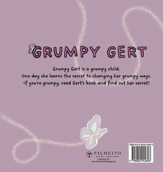Grumpy Gert is a grumpy child. One day she learns the secret to changing her grumpy ways. If you're grumpy, read Gert's book and find out her secret!