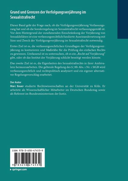 Dieser Band geht der Frage nach, ob die Verfolgungsverjährung Verfassungsrang hat und ob die Sonderregelung im Sexualstrafrecht verfassungsgemäß ist. Vor dem Hintergrund der zunehmenden Einschränkung der Verjährung von Sexualdelikten ist eine verfassungsrechtlich fundierte Auseinandersetzung mit Sinn und Zweck der Verfolgungsverjährung im Sexualstrafrecht notwendig.
