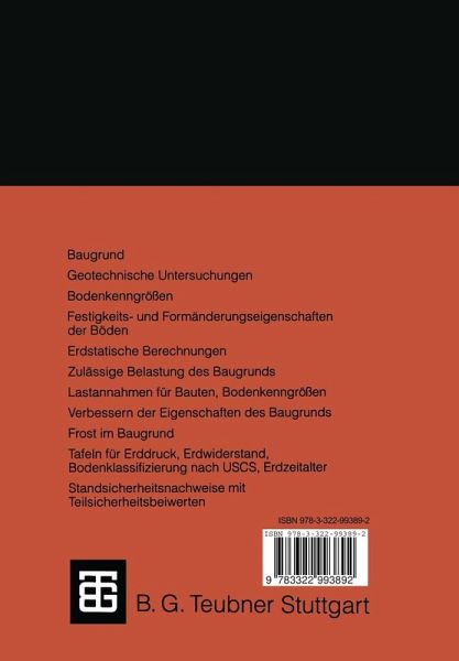 Das Werk "Grundbau" gehört bald neun Jahrzehnte zum Lehrbuchangebot des Verlages B. G. Teubner. Es wurde begründet und bis zur 6. Auflage 1937 weiterge führt von M. Benzel, nachfolgend bis zur 13. Auflage 1961 bearbeitet von W. E. Schulze. Seither haben sich sowohl die Kenntnisse über das Verhalten des Baugrundes als auch die Verfahren zur Ausführung von Grundbauwerken ständig weiterentwickelt. Dies führte zwangsläufig zur Ausweitung des behandelten Stoffgebietes und im Jahre 1974 zur Teilung des Werkes: Teil 1 behandelt "Bodenmechanik und erdstati sche Berechnungen", Teil 2 "Baugruben und Gründungen". Beide Bände wenden sich vornehmlich an die Studenten des Bauingenieurwesens und an die in der Praxis tätigen Ingenieure. Teil 1 vermittelt alle wichtigen Kenntnisse, die zum Verständnis von Wechselwirkun gen zwischen Baugrund und Bauwerk - in weitestem Sinne - erforderlich sind. Das Buch soll den jungen Ingenieur befähigen, grundbauspezifische Probleme zu erken nen, und ihm bewährte Lösungen an die Hand geben. Ferner wird der Benutzer mit erdstatischen Berechnungen und den jeweils maßgebenden DIN-Normen vertraut gemacht. Das Erarbeiten der Berechnungsmethoden erleichtern 48 Berechnungsbei spiele. Die für die 19. Auflage erforderliche Neubearbeitung gab Gelegenheit, die Darstel lung im notwendigen Umfang zu erweitern. So wurden die Abschnitte Dynamischer Plattendruckversuch, Flächendeckende dynamische Verdichtungskontrolle, Boden dynamische Kennwerte und Geotechnik der Deponien und Altlasten neu aufge nommen. Die übrigen Abschnitte sind überarbeitet und dem heutigen Stand der Technik und Normung angepaßt.