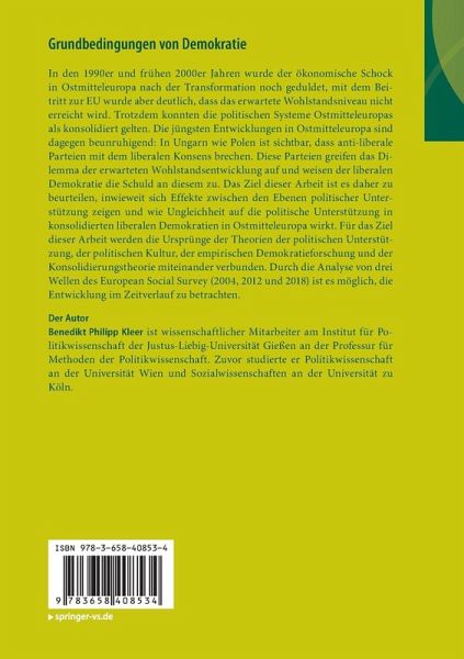 In den 1990er und frühen 2000er Jahren wurde der ökonomische Schock in Ostmitteleuropa nach der Transformation noch geduldet, mit dem Beitritt zur EU wurde aber deutlich, dass das erwartete Wohlstandsniveau nicht erreicht wird. Trotzdem konnten die politischen Systeme Ostmitteleuropas als konsolidiert gelten. Die jüngsten Entwicklungen in Ostmitteleuropa sind dagegen beunruhigend: In Ungarn wie Polen ist sichtbar, dass anti-liberale Parteien mit dem liberalen Konsens brechen. Diese Parteien greifen das Dilemma der erwarteten Wohlstandsentwicklung auf und weisen der liberalen Demokratie die Schuld an diesem zu. Das Ziel dieser Arbeit ist es daher zu beurteilen, inwieweit sich Effekte zwischen den Ebenen politischer Unterstützung zeigen und wie Ungleichheit auf die politische Unterstützung in konsolidierten liberalen Demokratien in Ostmitteleuropa wirkt. Für das Ziel dieser Arbeit werden die Ursprünge der Theorien der politischen Unterstützung, der politischen Kultur, der empirischen Demokratieforschung und der Konsolidierungstheorie miteinander verbunden. Durch die Analyse von drei Wellen des European Social Survey (2004, 2012 und 2018) ist es möglich, die Entwicklung im Zeitverlauf zu betrachten