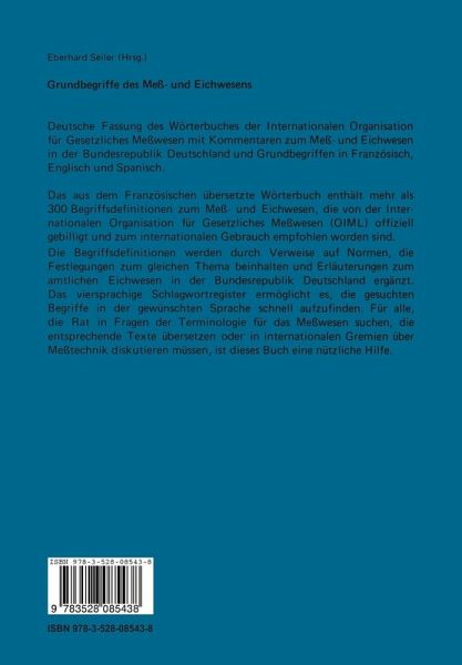 Die 1955 durch Regierungskonvention gegriindete Internationale Organisation fUr Gesetz liches MeBwesen (Organisation Internationale de Metrologie Legale, OIML), der 48 Staaten angehbren (Stand: Januar 1983), hat sich zum Ziel gesetzt, allgemeine Grundsatze filr das amtliche MeB- und Eichwesen zu erarbeiten und international anerkannte Anforderungen an MeBgerate und MeBverfahren festzulegen. Aus der Notwendigkeit heraus, sich Uber die damit verbundenen Probleme verstandigen zu mUssen, wurde eine internationale Arbeitsgruppe beauftragt, die grundlegenden Begriffe zum MeB- und Eichwesen zu definieren und in einem Wbrterbuch zusarmnenzufassen. Die Federftihrung lag bei Dr. Obalski yom polnischen Staatsamt fUr das MeBwesen, der selbst zu den Initiatoren dieser Idee gehbrt und durch seine Arbeit wesentlich zu ihrer Verwirk lichung beigetragen hat. Die nationale Arbeitsgruppe lei tete Prof. Dr. MUhe von der Physikalisch-Technischen Bun desanstalt, der technischen Oberbehbrde filr das MeB- und Eichwesen der Bundesrepublik Deutschland. Er gab auch die erste Obersetzung der in franzbsisch, der offiziellen Sprache der Organisation, abgefaBten Entwiirfe in den PTB-Mitteilungen heraus. Einen vorlaufigen AbschluB fanden die Arbeiten am Wbrterbuch mit der Genehmigung der Texte durch die dritte Internationale Konferenz fUr Gesetzliches MeBwesen im Jahr 1968.