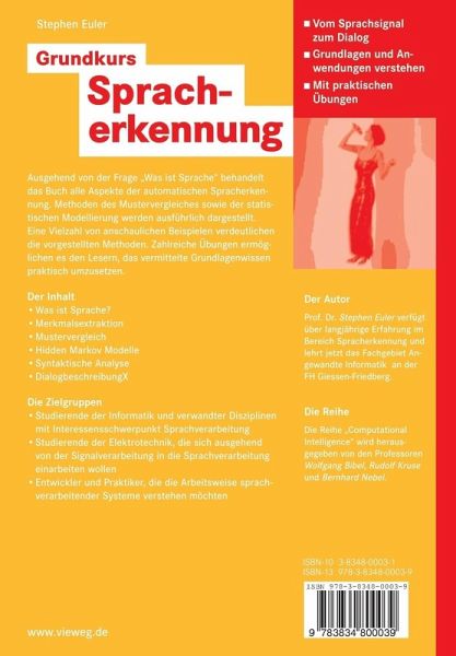 Ausgehend von der Frage "Was ist Sprache" behandelt das Buch alle Aspekte der automatischen Spracherkennung. Methoden des Mustervergleiches sowie der statistischen Modellierung werden ausführlich dargestellt. Eine Vielzahl von anschaulichen Beispielen verdeutlichen die vorgestellten Methoden. Zahlreiche Übungen ermöglichen es den Lesern, das vermittelte Grundlagenwissen praktisch umzusetzen.