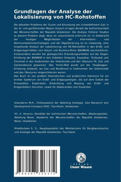 Die aktuellen Probleme der Suche und Erkundung von schwefelfreiem Gas in der öl- und gasführenden Region Ustyurt erregen derzeit die Aufmerksamkeit der Wissenschaftler der Republik Usbekistan. Die Analyse früherer Studien zu diesem Problem zeigt, dass es unzureichend erforscht ist. In Anbetracht der heutigen Möglichkeiten der Informations- und Kommunikationstechnologien und der Digitalisierung ist es notwendig, eine eingehende Analyse der Lokalisierung von HC-Rohstoffen in den Erdöl- und Erdgaslagerstätten von Ustjurt und Buchara-Khiva (BKHNGR) durchzuführen. Insbesondere wurden bei geologischen Erkundungsarbeiten auf der Kagan-Erhebung der BKHNGR in den Gebieten Shopulat, Sayozzhar, Turtkuduk und Zhumael in den Sedimenten der Unterkreide und des Oberjura Öl, Gas und Gaskondensat gewonnen. Das Yorkin-Feld wurde auf der Yangikazgan-Erhebung entdeckt, wo Gas und Kondensat in Sedimenten der Unterkreide und des Oberjuras eingeschlossen waren.Das Buch ist von großem theoretischen und praktischen Interesse für ein breites Spektrum von Erdöl- und Erdgasgeologen, die auf dem Gebiet der Prospektion, Exploration, Entwicklung und Nutzung von Erdöl- und Erdgasfeldern forschen, sowie für Doktoranden und Studenten.