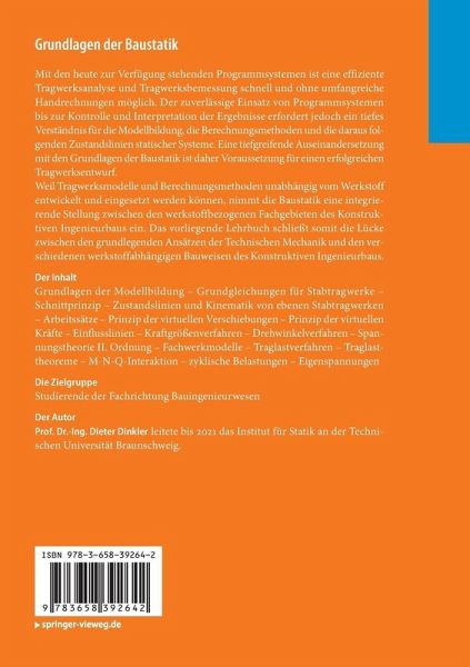 Ein tiefes Verständnis für Modelle, Methoden und Aufgabenstellungen der Baustatik ist Grundvoraussetzung für einen erfolgreichen Tragwerksentwurf. Weil Tragwerksmodelle und Berechnungsmethoden unabhängig vom Werkstoff entwickelt und eingesetzt werden können, nimmt die Baustatik eine integrierende Stellung zwischen den werkstoffbezogenen Fachgebieten des Konstruktiven Ingenieurbaus ein.