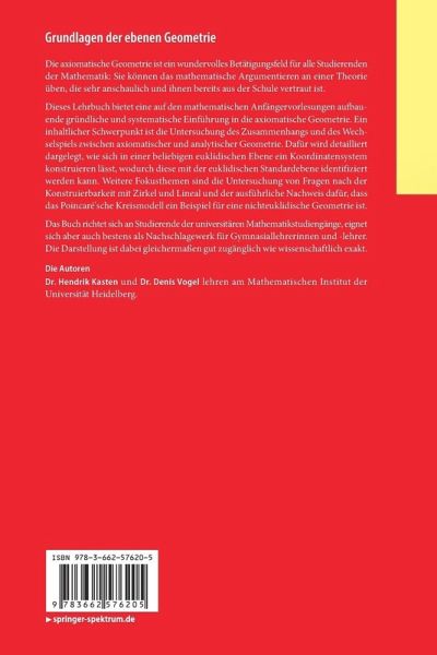 Dieses Lehrbuch bietet eine auf den mathematischen Anfängervorlesungen aufbauende gründliche und systematische Einführung in die axiomatische Geometrie. Ein inhaltlicher Schwerpunkt ist die Untersuchung des Zusammenhangs und des Wechselspiels zwischen axiomatischer und analytischer Geometrie. Dafür wird detailliert dargelegt, wie sich in einer beliebigen euklidischen Ebene ein Koordinatensystem konstruieren lässt, wodurch diese mit der euklidischen Standardebene identifiziert werden kann. Weitere Fokusthemen sind die Untersuchung von Fragen nach der Konstruierbarkeit mit Zirkel und Lineal und der ausführliche Nachweis dafür, dass das Poincaré'sche Kreismodell ein Beispiel für eine nichteuklidische Geometrie ist.
