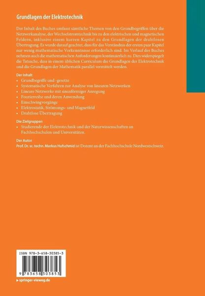 Der Inhalt des Buches umfasst sämtliche Themen von den Grundbegriffen über die Netzwerkanalyse, der Wechselstromtechnik bis zu den elektrischen und magnetischen Feldern, inklusive einem kurzen Kapitel zu den Grundlagen der drahtlosen Übertragung. Es wurde darauf geachtet, dass für das Verständnis der ersten paar Kapitel nur wenig mathematische Vorkenntnisse erforderlich sind. Im Verlauf des Buches nehmen auch die mathematischen Anforderungen kontinuierlich zu. Dies widerspiegelt die Tatsache, dass in einem üblichen Curriculum die Grundlagen der Elektrotechnik und die Grundlagen der Mathematik parallel vermittelt werden.