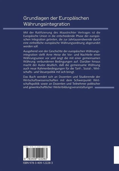 Ausgehend von der Geschichte der europäischen Währungsintegration stellt Heise die Vor- und Nachteile einer Währungsunion vor und zeigt die mit einer gemeinsamen Währung verbundenen Bedingungen auf. Der Autor macht deutlich, daß die gemeinsame Währung auch neue Rahmenbedingungen für die Tarif-, Sozial-, Wirtschafts- und Steuerpolitik mit sich bringt.