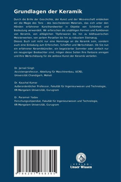 Durch die Brille der Geschichte, der Kunst und der Wissenschaft entdecken wir die Magie des Tons - des bescheidenen Materials, das sich unter den Händen erfahrener Kunsthandwerker in Objekte von Schönheit und Bedeutung verwandelt. Wir erforschen die unzähligen Formen und Funktionen von Keramik, von alltäglichen Töpferwaren bis hin zu bildhauerischen Meisterwerken, von zartem Porzellan bis hin zu robustem Steinzeug.Dieses Buch soll nicht nur eine Hommage an die Keramik sein, sondern auch eine Einladung zum Erforschen, Schaffen und Wertschätzen. Ob Sie nun ein erfahrener Keramikkünstler, ein begeisterter Sammler oder einfach nur ein neugieriger Beobachter sind, mögen diese Seiten Ihre Fantasie anregen und Ihre Wertschätzung für die zeitlose Kunst der Keramik vertiefen.