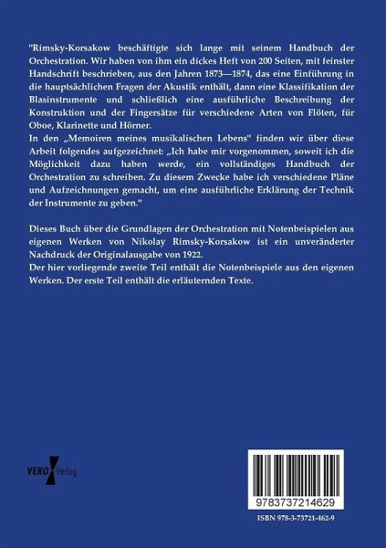 Dieses Buch über die Grundlagen der Orchestration mit Notenbeispielen aus eigenen Werken von Nikolay Rimsky-Korsakow ist ein unveränderter Nachdruckder Originalausgabe von 1922.