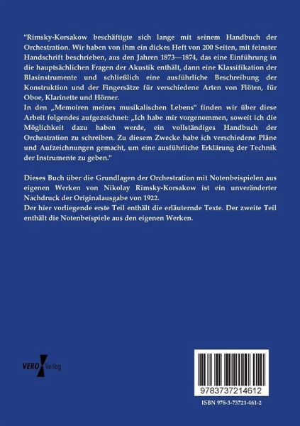 Dieses Buch über die Grundlagen der Orchestration mit Notenbeispielen aus eigenen Werken von Nikolay Rimsky-Korsakow ist ein unveränderter Nachdruckder Originalausgabe von 1922.