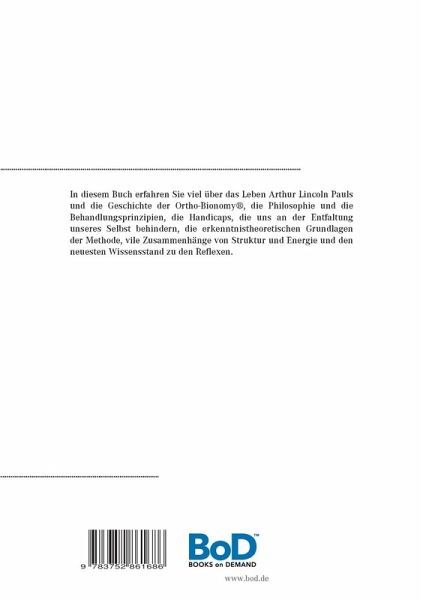 In diesem Buch erfahren Sie viel über das Leben Arthur Lincoln Pauls und die Geschichte der Ortho-Bionomy®, die Philosophie und die Behandlungsprinzipien, die Handicaps, die uns an der Entfaltung unseres Selbst behindern, die erkenntnistheoretischen Grundlagen der Methode, vile Zusammenhänge von Struktur und Energie und den neuesten Wissensstand zu den Reflexen.
