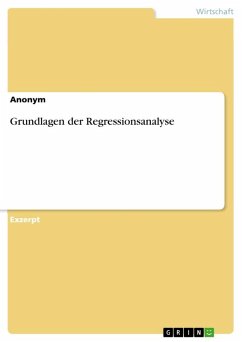 Exzerpt aus dem Jahr 2016 im Fachbereich VWL - Statistik und Methoden, Note: 1,1, FOM Essen, Hochschule für Oekonomie & Management gemeinnützige GmbH, Hochschulleitung Essen früher Fachhochschule, Sprache: Deutsch, Abstract: Die Regressionsanalyse zählt zu den statistischen Analyseverfahren und untersucht die Beziehung zwischen einer abhängigen Variablen (Regressand) und einer oder mehreren unabhängigen Variablen (Regressor). Auf Basis eines aus fachlichen Gesichtspunkten aufgestellten Modells wird im Rahmen der Regressionsanalyse eine Gleichung geschätzt, die den Zusammenhang zwischen der abhängigen und den unabhängigen Variablen möglichst genau beschreiben soll. Daraus abgeleitet liegt das Einsatzgebiet der Regressionsanalyse insbesondere in der Untersuchung von Kausalbeziehungen und wird darüber hinaus für Prognosen der abhängigen Variablen genutzt.Da die Schätzung der Regressionsfunktion in Abhängigkeit von den zugrunde liegenden Daten vorgenommen wird, werden nachfolgend verschiedene Regressionsmodelle vorgestellt.