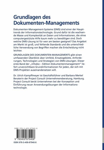 "Grundlagen des Dokumentenmanagements" (erster Band der Schriftenreihe "Dokumentenmanagement") gibt einen systematischen Überblick über Umfeld, Technologien, und Trends im Dokumentenmanagement-Markt.
