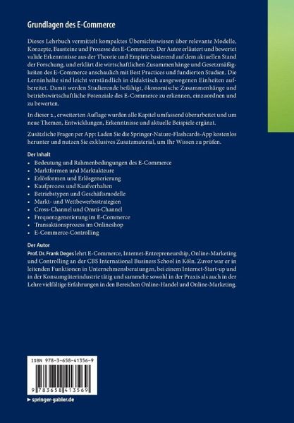 Dieses Lehrbuch vermittelt kompaktes Übersichtswissen über relevante Modelle, Konzepte, Bausteine und Prozesse des E-Commerce. Der Autor erläutert und bewertet valide Erkenntnisse aus der Theorie und Empirie basierend auf dem aktuellen Stand der Forschung, und erklärt die wirtschaftlichen Zusammenhänge und Gesetzmäßigkeiten des E-Commerce anschaulich mit Best Practices und fundierten Studien.Die Lerninhalte sind leicht verständlich in didaktisch ausgewogenen Einheiten aufbereitet. Damit werden Studierende befähigt, ökonomische Zusammenhänge und betriebswirtschaftliche Potenziale des E-Commerce zu erkennen, einzuordnen und zu bewerten.