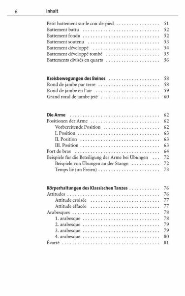 - alle Positionen, Schritte, Haltungen, Figuren im Ballett verständlich erläutert - unter Berücksichtigung der tanzpädagogisch richtigen Reihenfolge