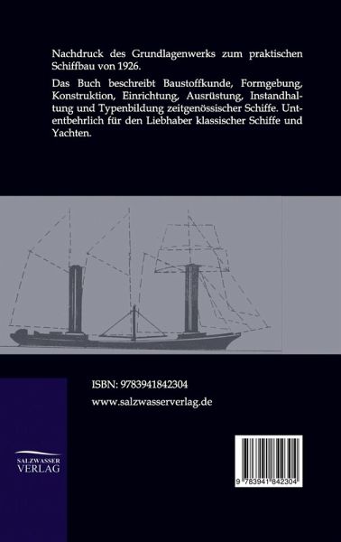 Nachdruck des Grundwerks zum praktischen Schiffbau von 1926. Das Buch beschreibt Baustoffkunde, Formgebung, Konstruktion, Einrichtung, Ausrüstung, Instandhaltung und Typenbildung zeitgenössischer Schiffe. Untentbehrlich für den Liebhaber klassischer Schiffe und Yachten.