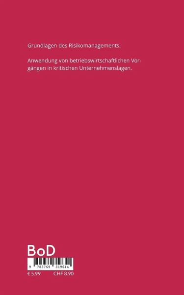 Grundlagen des Risikomanagements Anwendung von betriebswirtschaftlichen Vor-gängen in kritischen Unternehmenslagen Theoretischer Beitrag zur praktischen Anwendung