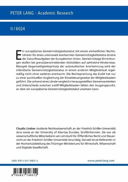 Ein europäisches Gemeinnützigkeitsstatut mit einem einheitlichen Rechtsrahmen für einen unionsweit anerkannten Gemeinnützigkeitsstatus ist eine der Zukunftsaufgaben der Europäischen Union. Gemeinnützige Einrichtungen stoßen bei grenzüberschreitenden Aktivitäten auf zahlreiche Hindernisse. Mangels Gegenseitigkeitsprinzip der automatischen Anerkennung wird der inländische Gemeinnützigkeitsstatus in einem anderen Mitgliedstaat regelmäßig nicht ohne weiteres anerkannt. Die Rechtsprechung des EuGH hat nur zu einer punktuellen Angleichung der Einzelsteuergesetze der Mitgliedstaaten geführt. Die anhand eines Ländervergleichs herausgestellten Gemeinsamkeiten und Unterschiede zwischen zwölf Mitgliedstaaten bilden den Ausgangspunkt, an dem ein europäisches Gemeinnützigkeitsstatut ansetzen kann.