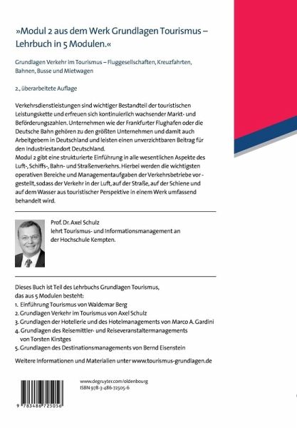 Verkehrsdienstleistungen sind wichtiger Bestandteil der touristischen Leistungskette und erfreuen sich kontinuierlich wachsender Markt- und Beförderungszahlen. Unternehmen wie der Frankfurter Flughafen oder die Deutsche Bahn gehören zu den größten Unternehmen und damit auch Arbeitgebern in Deutschland und leisten einen unverzichtbaren Beitrag für den Industriestandort Deutschland. Das Werk "Grundlagen Verkehr im Tourismus" gibt eine strukturierte Einführung in alle wesentlichen Aspekte des Luft-, Schiffs-, Bahn- und Straßenverkehr. Hierbei werden die wichtigsten operativen Bereiche und Managementaufgaben der Verkehrsbetriebe vorgestellt, so dass der Verkehr in der Luft, auf der Straße, auf der Schiene und auf dem Wasser aus touristischer Perspektive in einem Werk hinreichend behandelt wird.