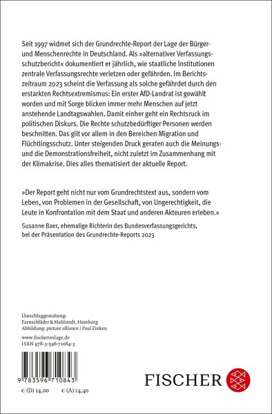 Seit 1997 widmet sich der Grundrechte-Report der Lage der Bürger- und Menschenrechte in Deutschland. Als »alternativer Verfassungsschutzbericht« dokumentiert er die vielfachen Bedrohungen, die von staatlichen Institutionen für diese Rechte ausgehen. Der aktuelle Report behandelt die Gefährdung von Grund- und Menschenrechten im Jahr 2023. In Deutschland und Europa sind rechte Bewegungen auf dem Vormarsch. Ihr Aufstieg verschiebt die Grenzen des unter der Geltung des Grundgesetzes Sagbaren. Darunter leiden zuallererst schutzbedürftige Personen, insbesondere Geflüchtete, deren Rechte massiv beschnitten werden. Daneben behandelt der Report unter anderem die Ausweitung des politischen Strafrechts, den steigenden Druck auf Meinungs- und Versammlungsfreiheit, den Abbau sozialer Grundrechte sowie die Zunahme staatlicher Gewalt und Repression.
