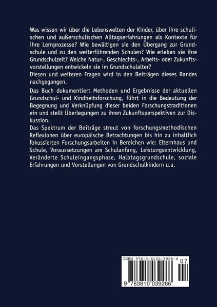 Was wissen wir über die Lebenswelten der Kinder, über ihre schulischen und außerschulischen Alltagserfahrungen als Kontexte für ihre Lernprozesse? Wie bewältigen sie den Übergang zur Grundschule und zu den weiterführenden Schulen? Wie erleben sie ihre Grundschulzeit? Welche Natur-, Geschlechts-, Arbeits- oder Zukunfts-vorstellungen entwickeln sie im Grundschulalter? Diesen und weiteren Fragen wird in den Beiträgen dieses Bandes nachgegangen. Das Buch dokumentiert Methoden und Ergebnisse der aktuellen Grundschul- und Kindheitsforschung, führt in die Bedeutung der Begegnung und Verknüpfung dieser beiden Forschungstraditionen ein und stellt Überlegungen zu ihren Zukunftsperspektiven zur Diskussion. Das Spektrum der Beiträge streut von forschungsmethodischen Reflexionen über europäische Betrachtungen bis hin zu inhaltlich fokussierten Forschungsarbeiten in Bereichen wie: Elternhaus und Schule, Voraussetzungen am Schulanfang, Leistungsentwicklung, Veränderte Schuleingangsphase, Halbtagsgrundschule, soziale Erfahrungen und Vorstellungen von Grundschulkindern u.a.