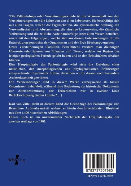 Karl von Zittel stellt in diesem Band die Grundzüge der Paläontologie dar. Besondere Aufmerksamkeit widmet er hierin den Invertebraten. Illustriert mit über 1.400 historischen Abbildungen.