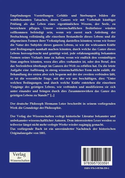 Der deutsche Philosoph Hermann Lotze beschreibt in seinem vorliegenden Werk die Grundzüge der Philosophie.