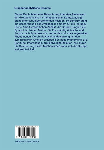 Dieses Buch liefert eine Betrachtung über den Stellenwert der Gruppentherapie im therapeutischen Kontext aus der Sicht einer relativ schulunabhängigen Position. Im Zentrum steht die Beschreibung des Umgangs mit einem für die therapeutische Arbeit wesentlichen Aspekt: daß die Gruppe vorder- und hintergründig als Symbol der frühen Mutter fungiert. Sie löst ständig Wünsche und Ängste nach Symbiose aus, verbunden mit stark regressiven Phänomenen. Durch die Auseinandersetzung mit den symbiotischen Anteilen ergeben sich neue Phänomene: die des Splitting, Paring und der projektiven Indentifikation. Nur durch die Bearbeitung dieser Bewältigungsmechanismen kann sich die Gruppe weiterentwickeln.