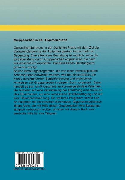 Gesundheitsberatung in der ärztlichen Praxis.- Erweiterung des therapeutischen Spektrums in der allgemeinen ärztlichen Versorgung durch Gruppenarbeit mit körperlich Kranken.- Ergebnisse zum bundesweiten Einsatz eines Gruppenprogramms für adipöse essentielle Hypertoniker (Hypertonie im Gespräch - Adipositas).- Entspannung und Streßbewältigung mit essentiellen Hypertonikern - das Gruppenprogramm "Hypertonie im Gespräch - Streßbewältigung".- Gruppenarbeit mit essentiellen Hypertonikern - ein Erfahrungsbericht aus der Praxis.- "KHK im Gespräch" - ein verhaltenstherapeutisch orientiertes Gruppenbehandlungsprogramm für koronar gefährdete Raucher.- Erfahrungen mit dem Nichtrauchertraining für Koronarpatienten aus der Sicht des niedergelassenen Arztes.- "Schmerz im Gespräch" - ein Programm zur psychologischen Behandlung chronischer Schmerzen in Arztpraxen.- Praxis der Gruppenarbeit mit chronisch Kranken.- Verhaltensmedizinische Behandlung der peripheren arteriellen Verschlußkrankheit in der Praxis des niedergelassenen Arztes.