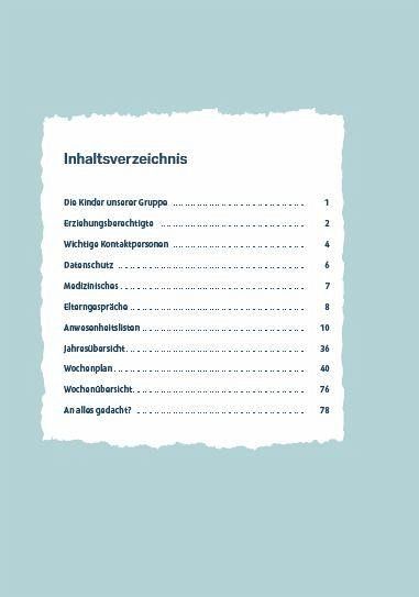 Alles im Blick mit dem Gruppentagebuch! Das Gruppentagebuch ist euer zuverlässiger Begleiter für die tägliche Kita-Arbeit! Alle wichtigen Infos sind hier an einem Ort versammelt - ob Kontaktdaten der Kinder, Infos zu den Erziehungsberechtigten oder Anwesenheitslisten. Zudem bietet das Tagebuch viel Platz für Notizen und Wochenpläne, um eure Planung und Dokumentation das ganze Kita-Jahr optimal zu unterstützen. Mit Checklisten zu wichtigen Themen wie Datenschutz habt ihr auch organisatorische Anforderungen super im Griff. ¿ Alle wichtigen Infos und Kontaktdaten der Kindergruppe auf einen Blick ¿ Anwesenheitslisten, Jahresübersicht und Wochenpläne mit viel Platz für Notizen ¿ Checklisten zu Datenschutz und weiteren wichtigen Themen