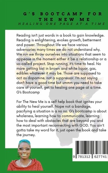 Reading isn't just words in a book to gain knowledge. Reading is enlightening, evokes growth, betterment and power. Throughout life we face various adversaries many times we do not understand why. We run we throw ourselves into situations that seem to appease in the moment either it be a relationship or a so-called project. Stop running, it's time to heal. No more getting lost in brown and white liquor, gas, edibles whatever it may be. Those are supposed to act as dopamine, not a suppressor. I'm not saying don't have a good time but ummm you need to take care of yourself, get to healing one page at a time. G's Bootcamp For The New Me is a self help book that ignites your ability to heal yourself. Nope not a bandage, pacifying a situation is a no no. G's bootcamp is about wholeness, learning how to communicate, learning how to deal with obstacles that are beyond you and the most important reconnecting with GOD. You ain't gotta take my word for it, just open the book and take the journey.