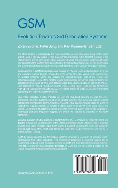 The Global System for Mobile Communication (GSM) is undoubtedly the most successful second generation digital mobile radio system. One of the key factors for this exceptional performance is the constant evolution of the GSM systems and its derivatives DCS-1800 and PCS-1900. The objective of the book is to address new concepts in the GSM system, dealing with both standardised features as well as theoretically and technologically feasible improvements, which contribute to evolutionary changes in general. Dynamic evolution of GSM presents a platform for the Universal Mobile Telecommunication System (UMTS) introduction and major trends in UMTS development will be addressed in this book, in particular progress towards new radio interface. The book is the collection of individual contributions from a number of authors. The intention of the editors was to gather the most prominent specialist in the GSM area. Ongoing efforts in GSM standardisation are focused on Phase 2+ with items planned tobe added gradually on demand. Being mostly independent of each other, each of them could be introduced with little impact on the rest of the system. Speech remains the prime service of cellular systems with ongoing work on spectral efficiency taking into account the trade-off between cost of the system and transmission quality. Most notable result from novel speech service implementations is the introduction of new Enhanced Full Rate (EFR) speech coder. International railway organisation (Union Internationale des Chemins de Fer - UIC) has influenced the development of Advanced Speech Call Items (ASCI).