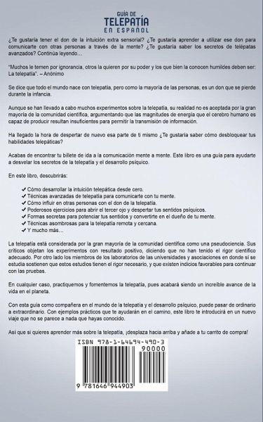 ¿Te gustaría tener el don de la intuición extra sensorial? ¿Te gustaría aprender a utilizar ese don para comunicarte con otras personas a través de la mente? ¿Te gustaría saber los secretos de telépatas avanzados? Continúa leyendo... "Muchos le temen por ignorancia, otros la quieren por su poder y los que bien la conocen humildes deben ser: La telepatía". - Anónimo Se dice que todo el mundo nace con telepatía, pero como la mayoría de las personas, es un don que se pierde durante la infancia. Aunque se han llevado a cabo muchos experimentos sobre la telepatía, su realidad no es aceptada por la gran mayoría de la comunidad científica, argumentando que las magnitudes de energía que el cerebro humano es capaz de producir resultan insuficientes para permitir la transmisión de información. Ha llegado la hora de despertar de nuevo esa parte de ti mismo ¿Te gustaría saber cómo desbloquear tus habilidades telepáticas? Acabas de encontrar tu billete de ida a la comunicación mente a mente. Este libro es una guía para ayudarte a desvelar los secretos de la telepatía y el desarrollo psíquico. En este libro, descubrirás: Cómo desarrollar la intuición telepática desde cero. Técnicas avanzadas de telepatía para comunicarte con tu mente. Cómo influir en otras personas con el don de la telepatía. Poderosos ejercicios para abrir el tercer ojo y despertar tus sentidos psíquicos. Formas secretas para potenciar tus sentidos y convertirte en el dueño de tu mente. Técnicas asombrosas para la telepatía remota y cercana. Y mucho más... ¿ En cualquier caso, practiquemos y fomentemos la telepatía, pues acabará siendo un increíble avance de la vida en el planeta. Con esta guía como compañera en el mundo de la telepatía y el desarrollo psíquico, puede pasar de ordinario a extraordinario. Con ejemplos prácticos que te ayudarán en el camino, este libro te introducirá en un nuevo viaje que no se parece a nada que hayas conocido. Así que si quieres aprender más sobre la telepatía, ¡desplaza hacia arriba y añade a tu carrito de compra!