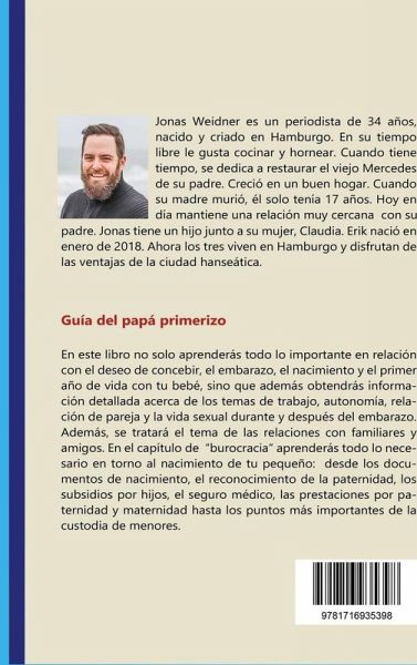 Guía del papá primerizo Cómo convertirte rápidamente en un popular experto en cuestiones relacionadas con los hijos ¿Quieres saber todo lo relacionado con el deseo de concebir, el embarazo y el bebé? ¿Como padre de tus hijos, te gustaría compaginar tu familia con tu trabajo y carrera, ya trabajes como empleado en una empresa o por cuenta propia? ¿Y te gustaría, pese a tener un hijo, saber cómo tener la actitud adecuada para mantener una relación intacta y tener una vida sexual plena? ¿O simplemente buscas el regalo apropiado? En mi libro podrás ver cómo vencer el miedo a ser padre cómo no debes renunciar al sexo antes y después del nacimiento cómo te das cuenta de que tu pareja está embarazada qué es lo que debes hacer y lo que no debes hacer durante el embarazo qué es lo que cambia en la relación y a qué debes prestar atención cómo puedes mantenerte en forma con el bebé las diferentes posibilidades que existen para el parto cómo puedes hacer de tu casa un hogar seguro cómo construyes una relación cercana con tu bebé cómo ves el mundo desde tu punto de vista cómo te manejas con tu entorno en caso de que haya discrepancias cómo solucionas la jungla burocrática de la manera más rápida posible ... ¿Buscas una respuesta a estas y otras muchas preguntas? ¡Entonces la guía del papá primerizo es exactamente el libro correcto para ti! Aprenderás todo lo que necesitas saber acerca del deseo de concebir, el embarazo, el parto y el bebé. Es la inmersión perfecta en el tema y te acompañará hasta el final del primer año de vida de tu bebé. Después podrás utilizar el libro como obra de consulta. ¿Quieres que un libro te cuente sin rodeos los hechos más importantes acerca del tema de "ser padre"? ¿Quieres un libro con mucha información adicional, consejos y listas de comprobación? ¿Un libro con más de 26.000 palabras? ¿Un libro en el que te ofrecen la información sin trampas como letra grande y grandes espacios y sin una estructura artificial? La traductora no solo ha traducido el libro de forma concienzuda al español, sino que también ha adaptado el contenido a la situación española, en concreto el último capítulo, que se ocupa de los obstáculos burocráticos. ¡Entonces deja de buscar y pulsa el botón de "COMPRAR AHORA"!