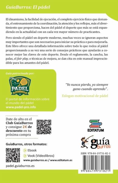El dinamismo, la facilidad de ejecución, el completo ejercicio físico que demanda, el entrenamiento de la coordinación, la atención y los reflejos, más el divertimiento que proporciona, hacen del pádel el deporte que más se está expandiendo en la actualidad con un cada vez mayor número de practicantes. Pero siendo el pádel un deporte moderno, muchas veces se ignoran aspectos muy importantes que son necesarios para iniciar su práctica o para mejorarla. Este libro ofrece una detallada información sobre todo lo que rodea al pádel proporcionando a su vez una serie de consejos prácticos que ayudarán a conocer mejor las claves de este deporte. Desde el reglamento, la cancha, las palas, el fair play, o técnicas de mejora, se dan cita en este manual imprescindible para los amantes del pádel.