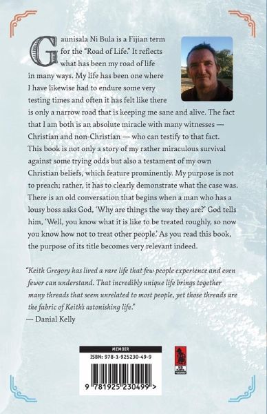 Gaunisala Ni Bula is a Fijian term for the "Road of Life." It reflects what has been my road of life in many ways. My life has been one where I have likewise had to endure some very testing times and often it has felt like there is only a narrow road that is keeping me sane and alive. The fact that I am both is an absolute miracle with many witnesses — Christian and non-Christian — who can testify to that fact. This book is not only a story of my rather miraculous survival against some trying odds but also a testament of my own Christian beliefs, which feature prominently. My purpose is not to preach; rather, it has to clearly demonstrate what the case was.There is an old conversation that begins when a man who has a lousy boss asks God, ‘Why are things the way they are?’ God tells him, ‘Well, you know what it is like to be treated roughly, so now you know how not to treat other people.’ As you read this book, the purpose of its title becomes very relevant indeed.