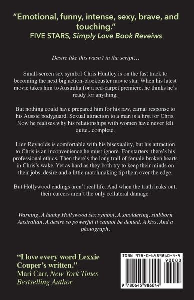 Desire like this wasn't in the script... Small-screen sex symbol Chris Huntley is on the fast track to becoming the next big action-blockbuster movie star. When his latest movie takes him to Australia for a red-carpet premiere, he thinks he's ready for anything. But nothing could have prepared him for his raw, carnal response to his Aussie bodyguard. Sexual attraction to a man is a first for Chris. Now he realises why his relationships with women have never felt quite...complete. Liev Reynolds is comfortable with his bisexuality, but his attraction to Chris is an inconvenience he must ignore. For starters, there's his professional ethics. Then there's the long trail of female broken hearts in Chris's wake. Yet as hard as they both try to keep their minds on their jobs, desire and a little matchmaking tip them over the edge. But Hollywood endings aren't real life. And when the truth leaks out, their careers aren't the only collateral damage. Warning. A hunky Hollywood sex symbol. A smoldering, stubborn Australian. A desire so powerful it cannot be denied. A kiss. And a photograph.