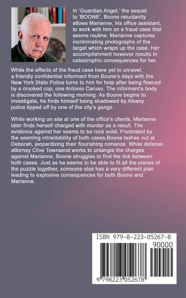 In 'Guardian Angel,' the sequel to 'BOONE', Boone reluctantly allows Marianne, his office assistant, to work with him on a fraud case that seems routine. Things go well, Marianne captures incriminating photographs of the target which wraps up the case. Her accomplishment however results in catastrophic consequences for her. While the effects of the fraud case have yet to unravel, a friendly confidential informant from Boone's days with the New York State Police turns to him for help after being fleeced by a crooked cop, one Antonio Caruso. The informant's body is discovered the following morning. As Boone begins to investigate, he finds himself being shadowed by Albany police tipped off by one of the city's gangs. After working on site at one of the office's clients, Marianne later finds herself charged with murder as a result. The evidence against her seems to be rock solid. Frustrated by the seeming intractability of both cases, Boone lashes out at Deborah, jeopardizing their flourishing romance. While defense attorney Clive Townsend tries to untangle the charges against Marianne, Boone struggles to find the link between both cases. Just as he seems to be able to fit all the pieces of the puzzle together, someone else has a very different plan, leading to explosive consequences for both Boone, and Marianne.